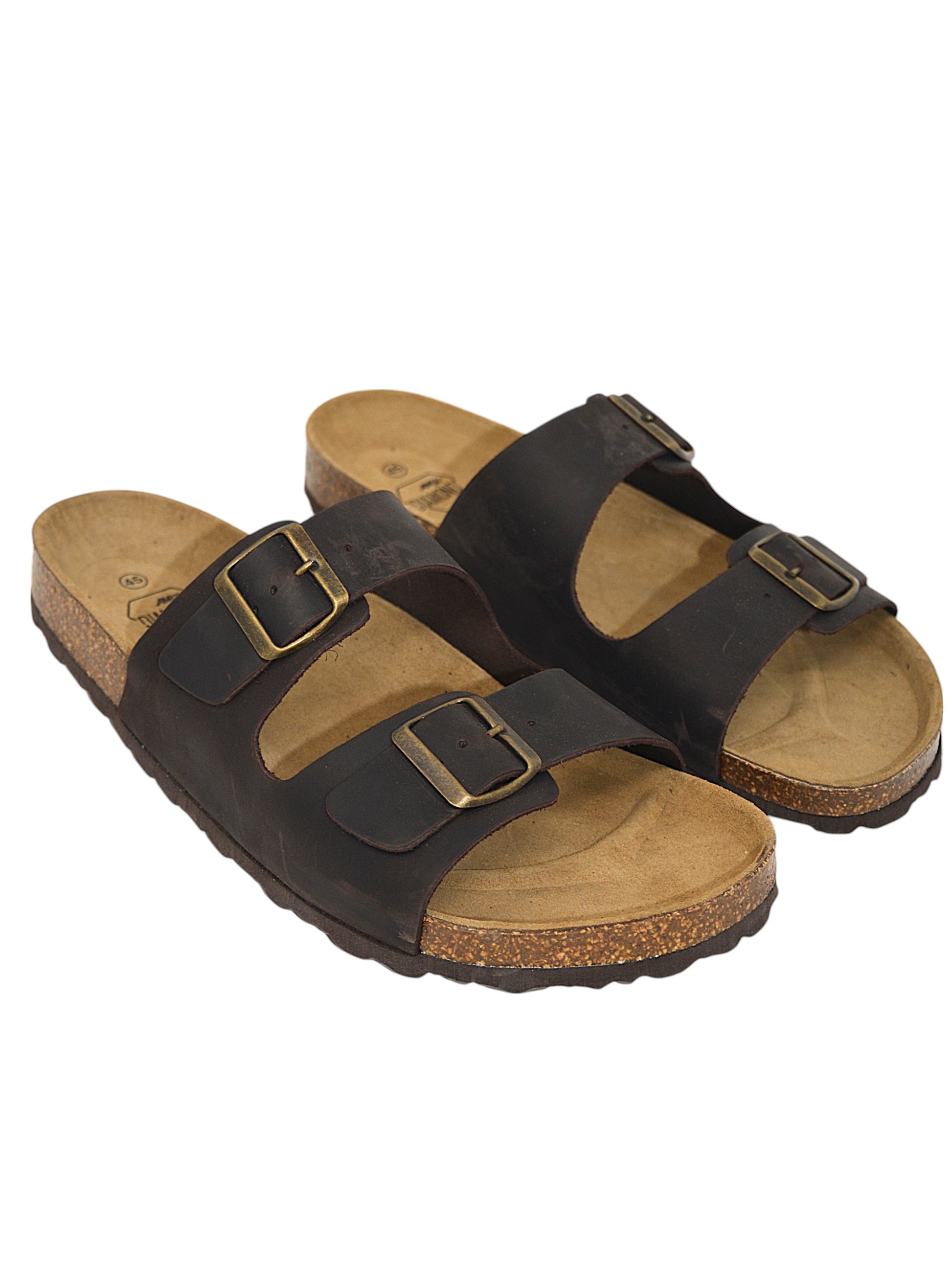 Ciabatta uomo doppia fibbia marrone - 10616TM