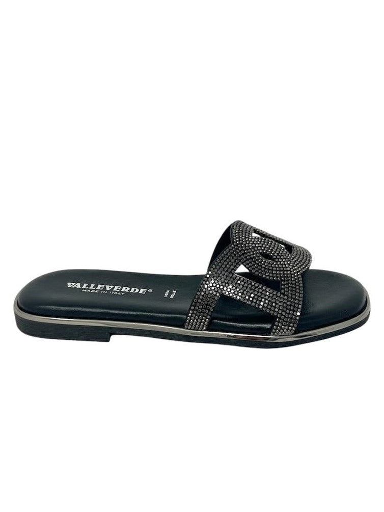 Questa ciabatta elegante e confortevole è perfetta per ogni occasione. La fascia nera aggiunge un tocco di stile, mentre la suola in gomma assicura una presa stabile. Facile da indossare, con un'ampiezza adatta a ogni piede. Ideale per un look casual o perfetta per un'occasione più formale.