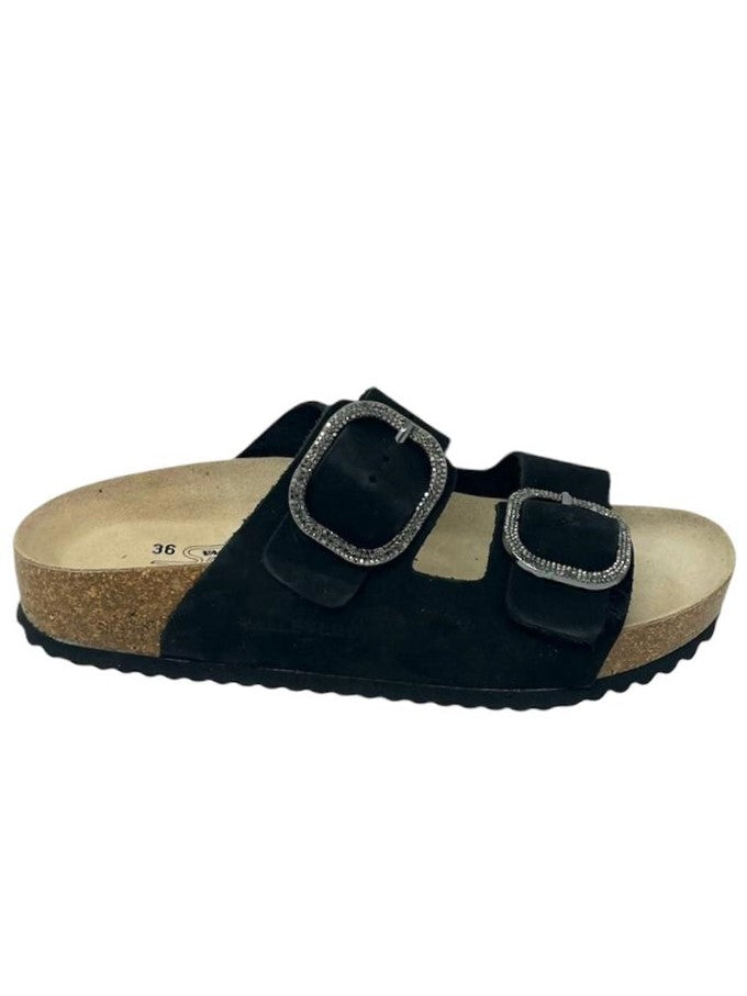 Ciabatta doppio cinturino regolabile in nabuk nero - VG1571TK