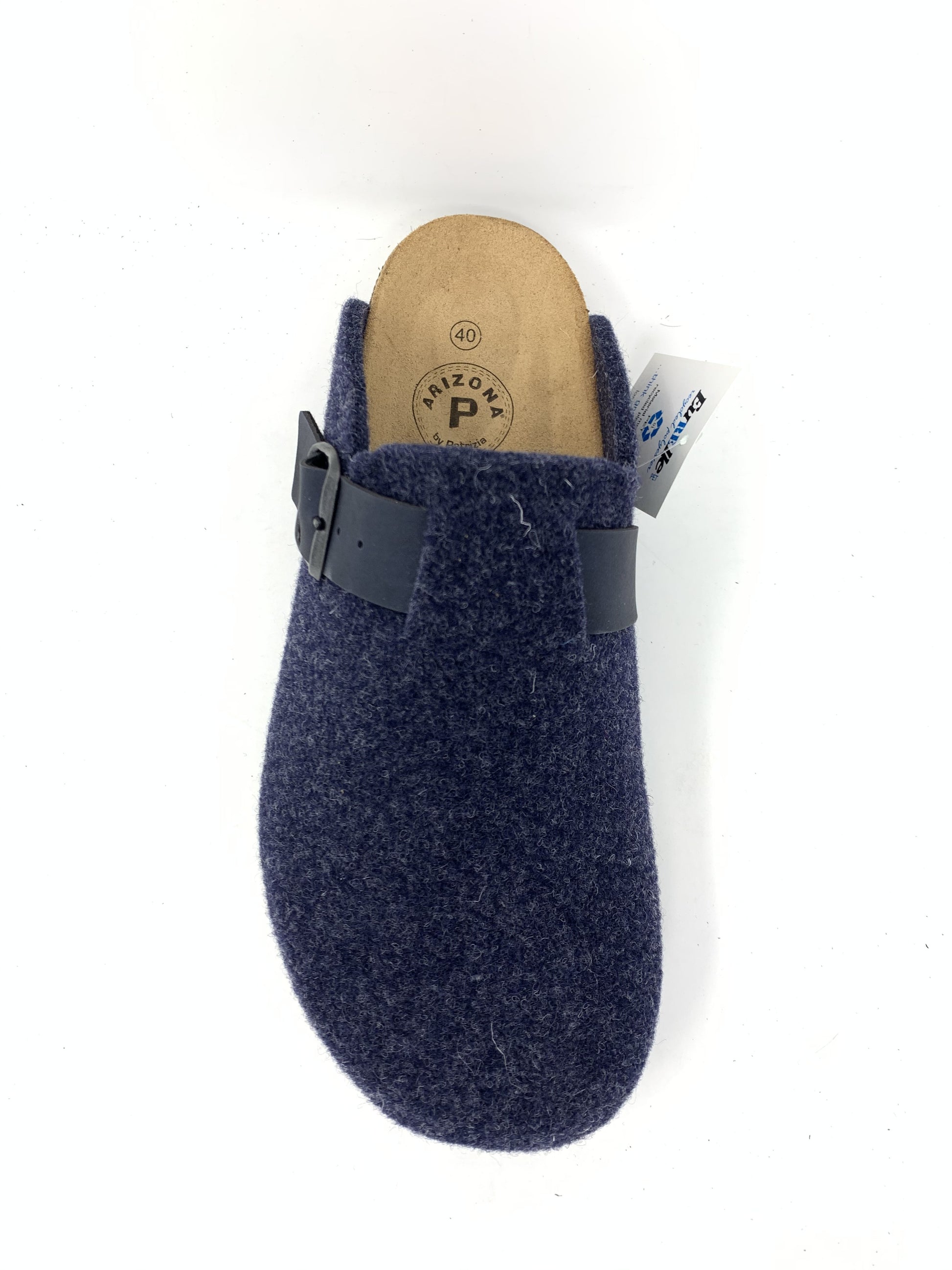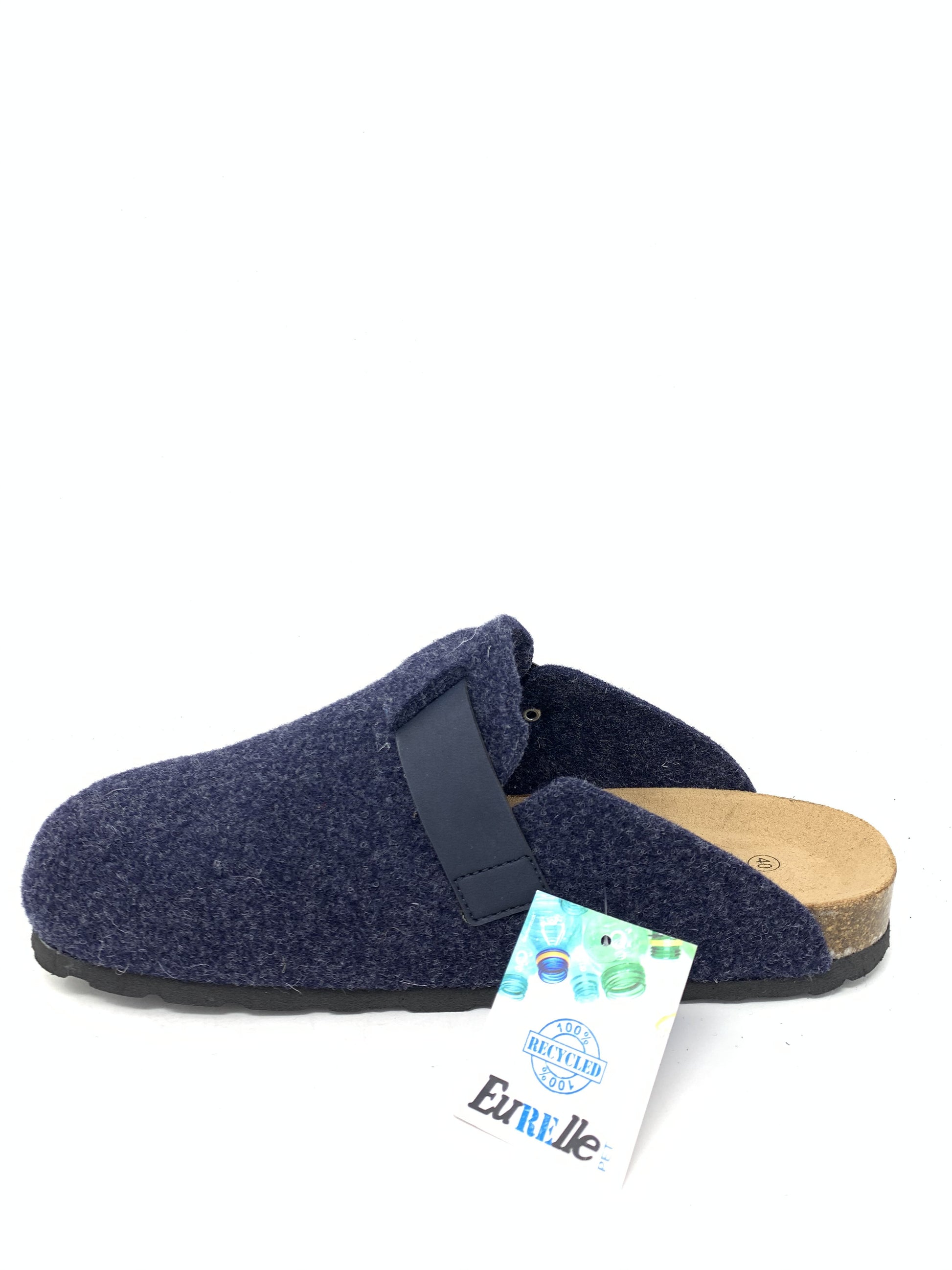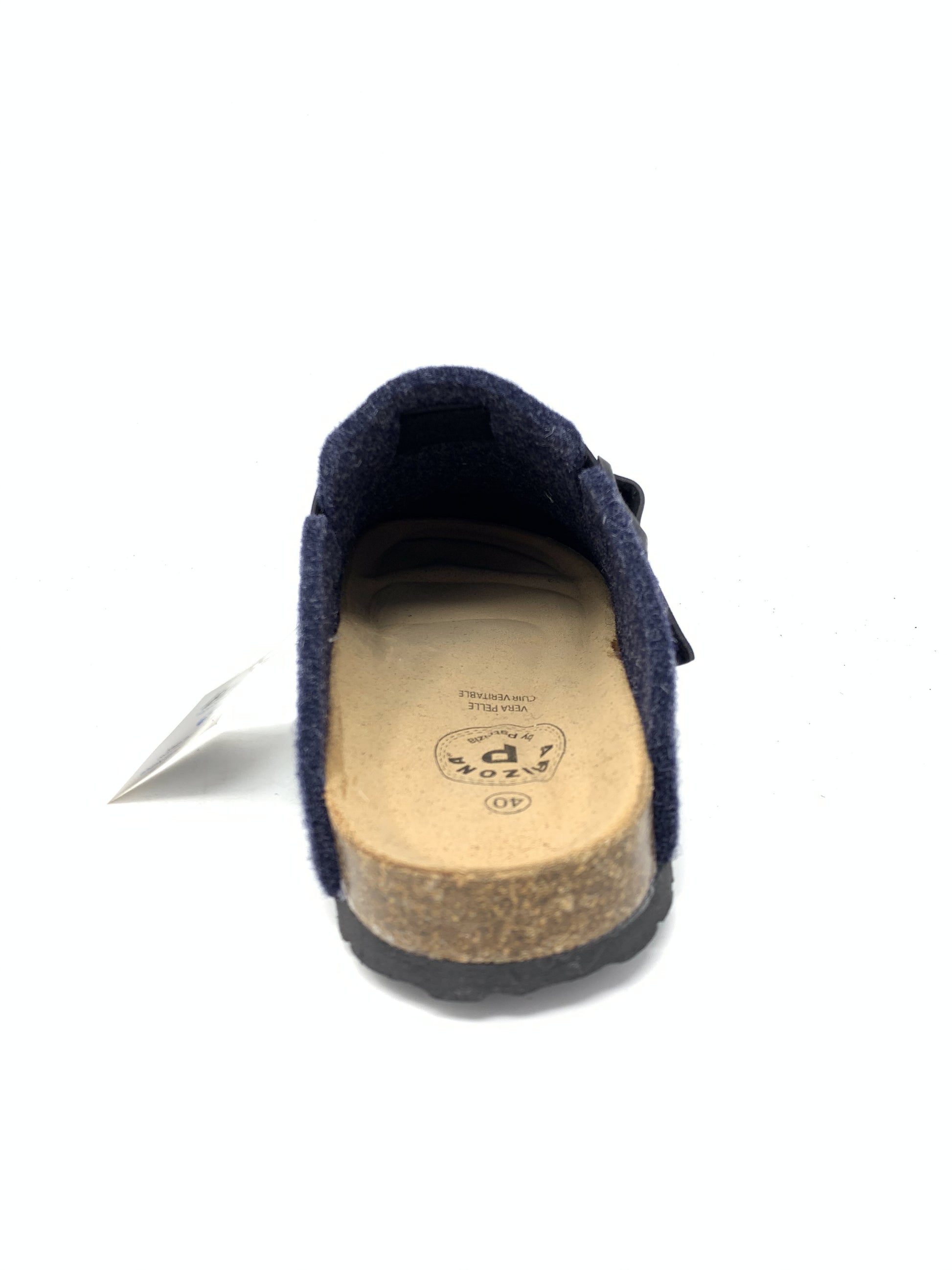 Ciabatta uomo realizzata con fondo sughero in penno blu. Morbida e comoda