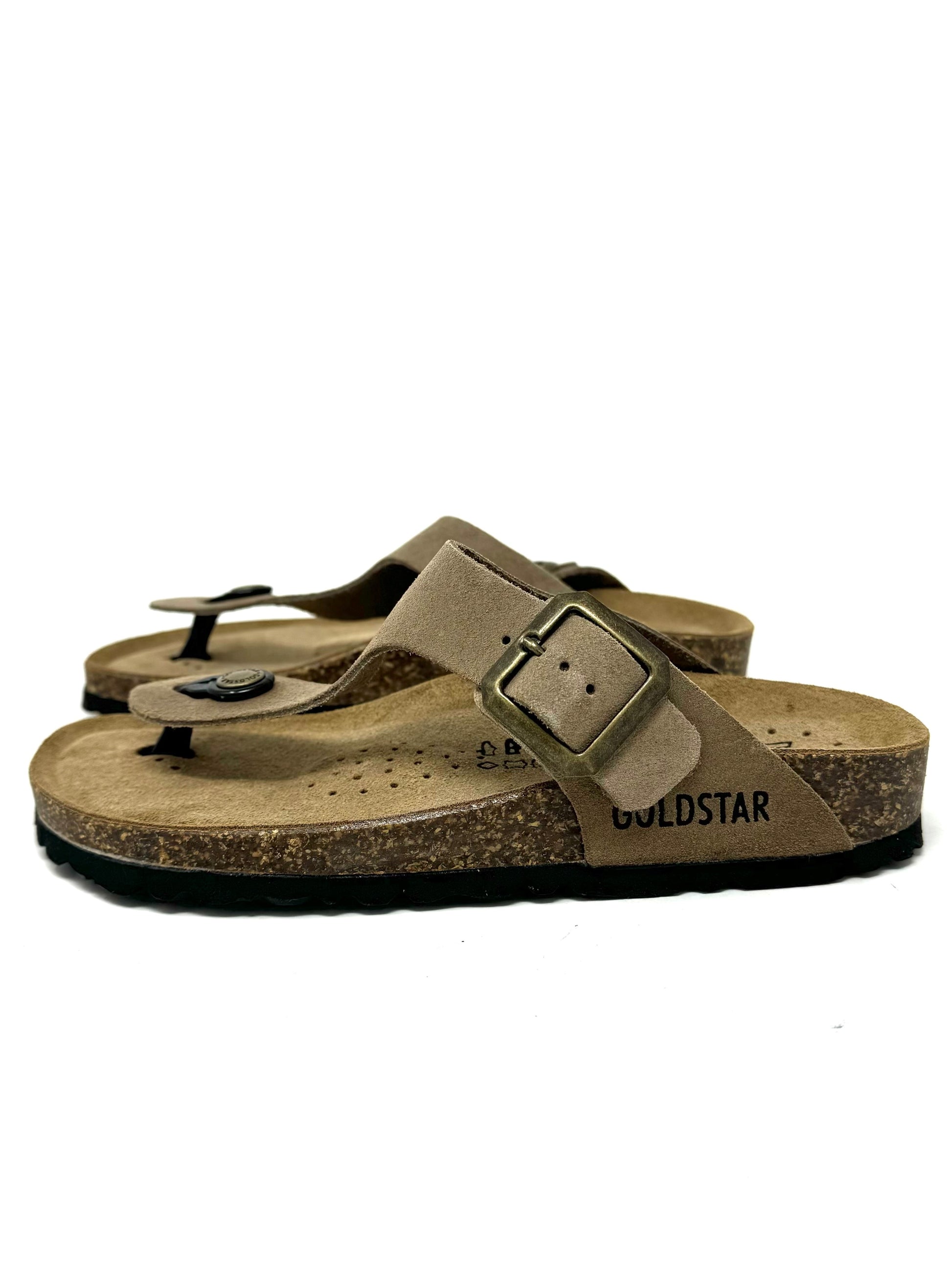 Queste ciabattine con infradito e platform sono realizzate in sughero color cognac. L'innovativo materiale offre una calzata comoda e traspirante, perfetta per l'estate. Lo stile classico è arricchito dalla presenza del platform, per un tocco di modernità. Ideali per completare il tuo outfit estivo con un look casual e sofisticato.