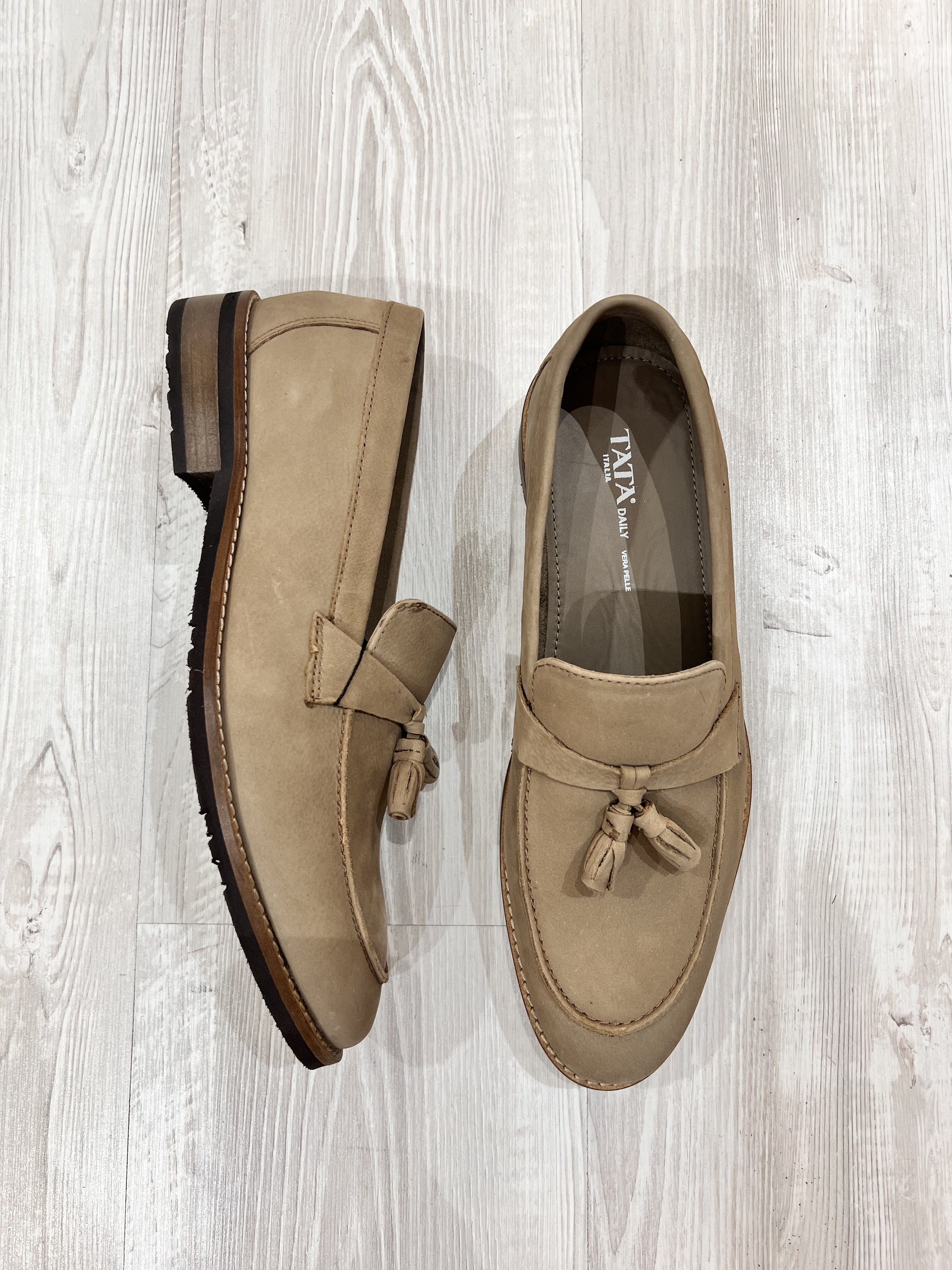 Questi mocassini in suede taupe con nappine sono perfetti per ogni occasione. Grazie al materiale di alta qualità, sono comodi ed eleganti allo stesso tempo. Ideali per un look formale o casual, questi mocassini aggiungeranno un tocco di classe al tuo outfit.