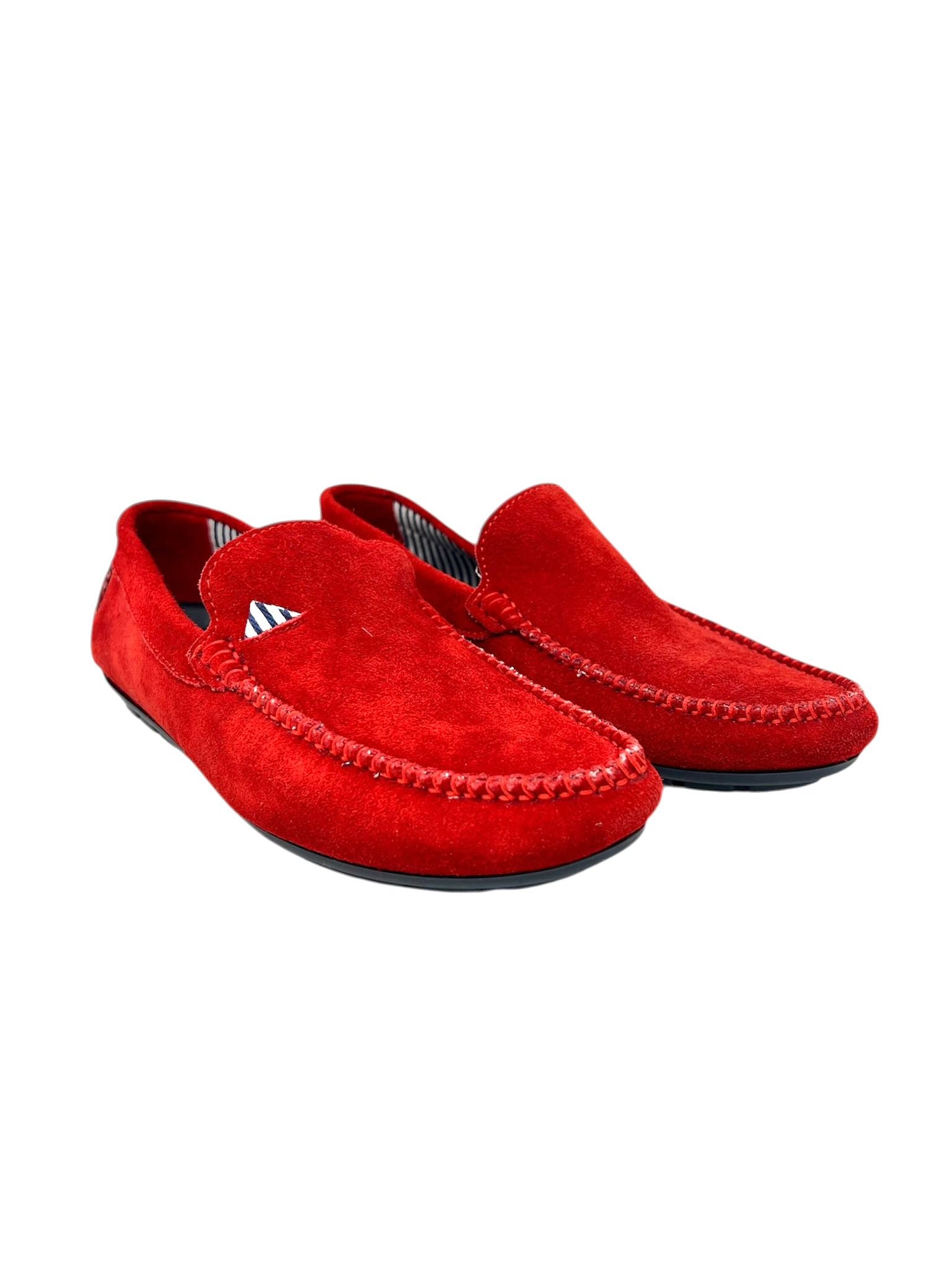 Questi mocassini Car Shoes in camoscio rosso uniscono stile e comfort grazie alla loro suola in gomma, che garantisce una calzata morbida e una buona aderenza. Perfetti per chi cerca un tocco di colore raffinato senza rinunciare alla praticità quotidiana.