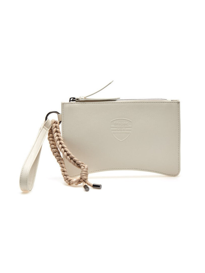 Poschette Blauer bianca con laccio NELLY01 con logo in rilievo ton su ton, laccio in corda o in tinta, eco-pelle.