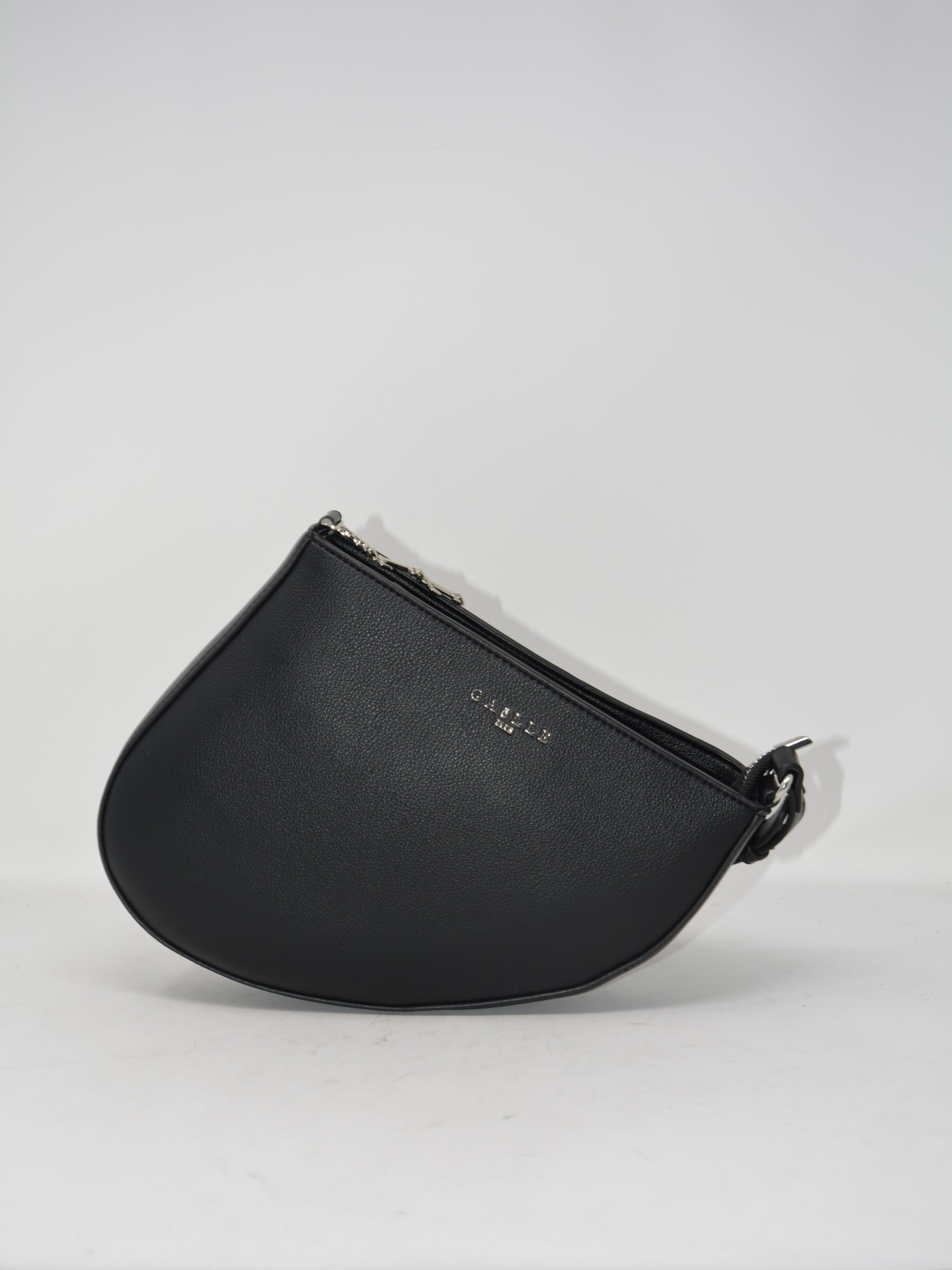 Questa borsa nera con tracolla si distingue per il suo design unico, privo della classica forma tradizionale. Al suo interno, un pratico taschino consente di organizzare piccoli oggetti in modo efficiente, combinando funzionalità e stile in un accessorio raffinato e moderno.