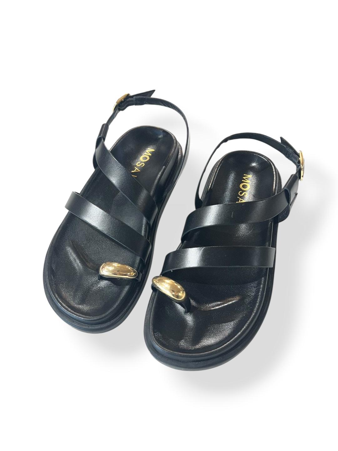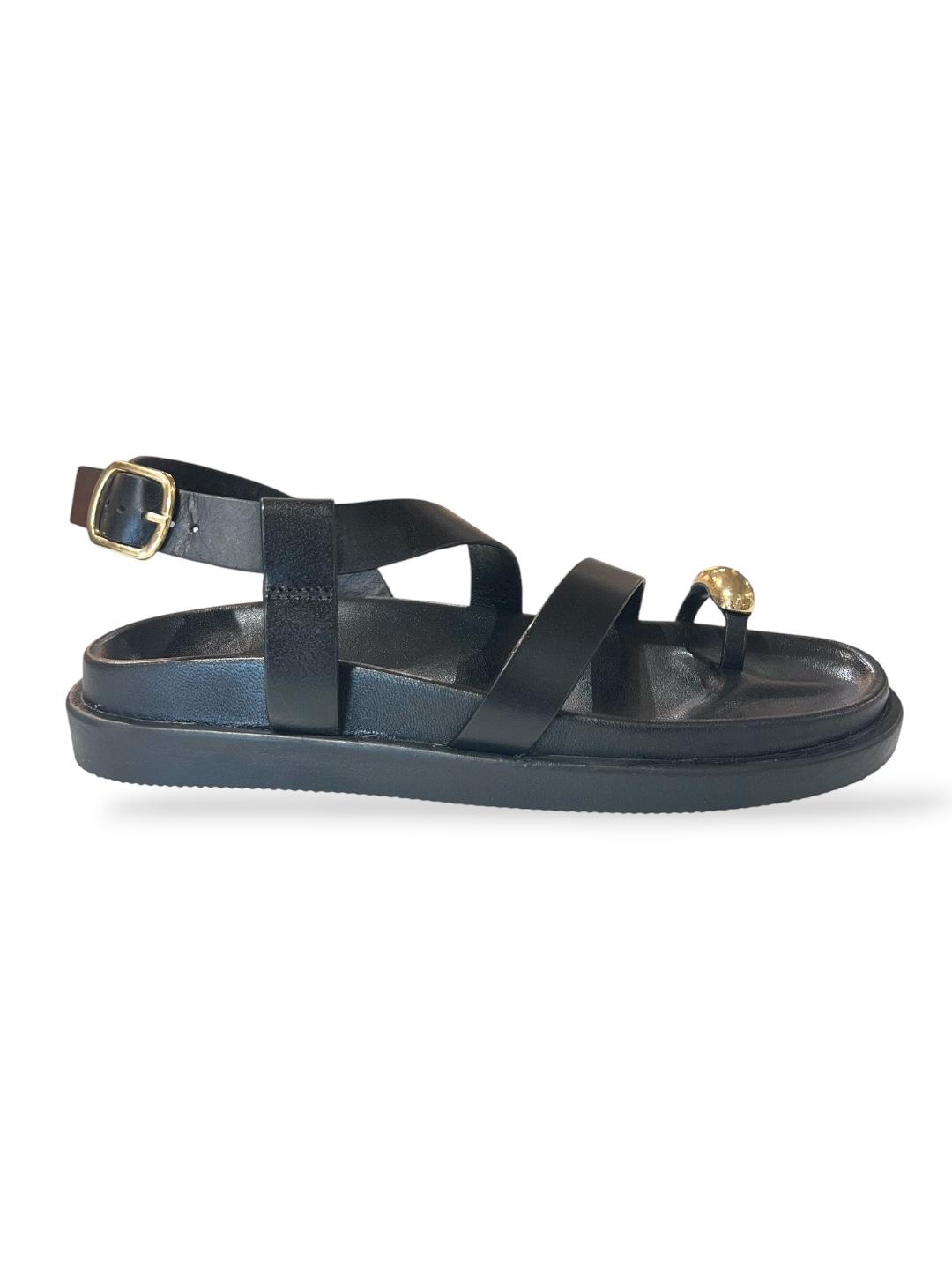 Sandalo fusbet nero infrapollice con dettaglio oro - V_F210B