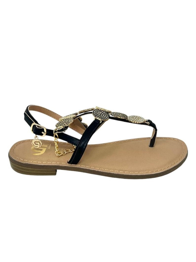 Sandalo infradito strass oro/nero - GL835NE