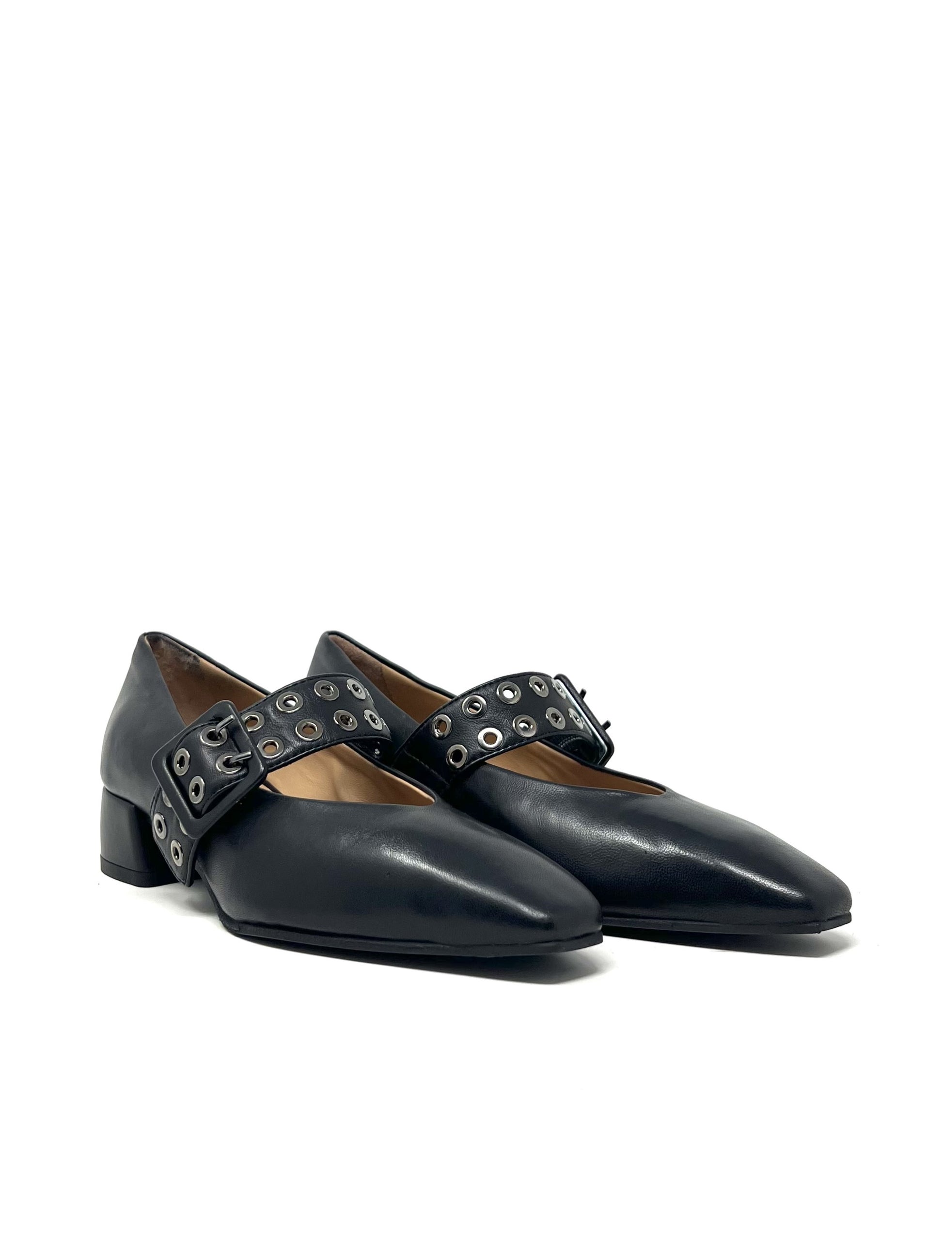 La scarpa bassa con borchie e nappetta nera unisce stile e comfort per accompagnarti tutto il giorno. Il design moderno con dettagli in metallo dona un tocco di carattere al tuo look, mentre la struttura bassa garantisce praticità e facilità di movimento. Perfetta per chi cerca un modello versatile e distintivo da indossare con sicurezza in ogni occasione.