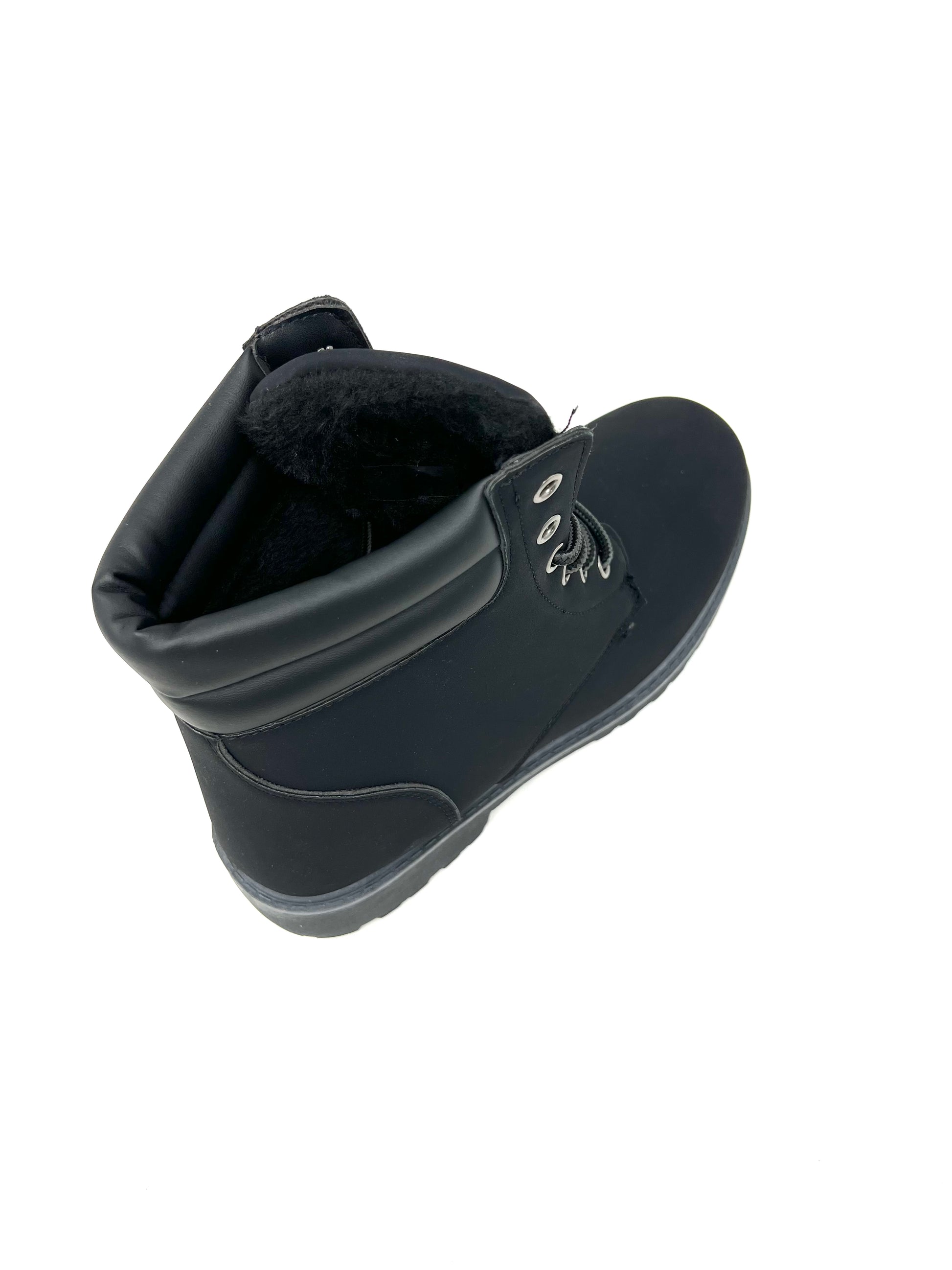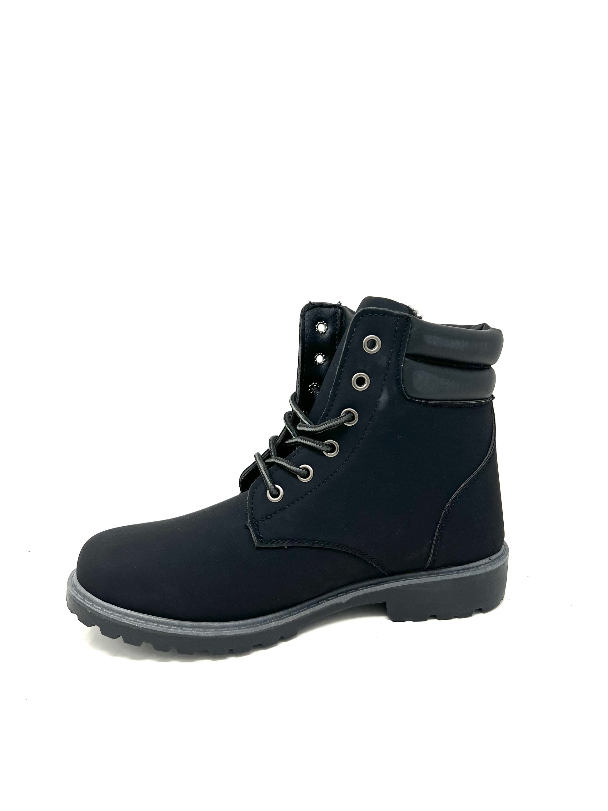 Scarponcino trekking nero in eco-pelle, con lacci.