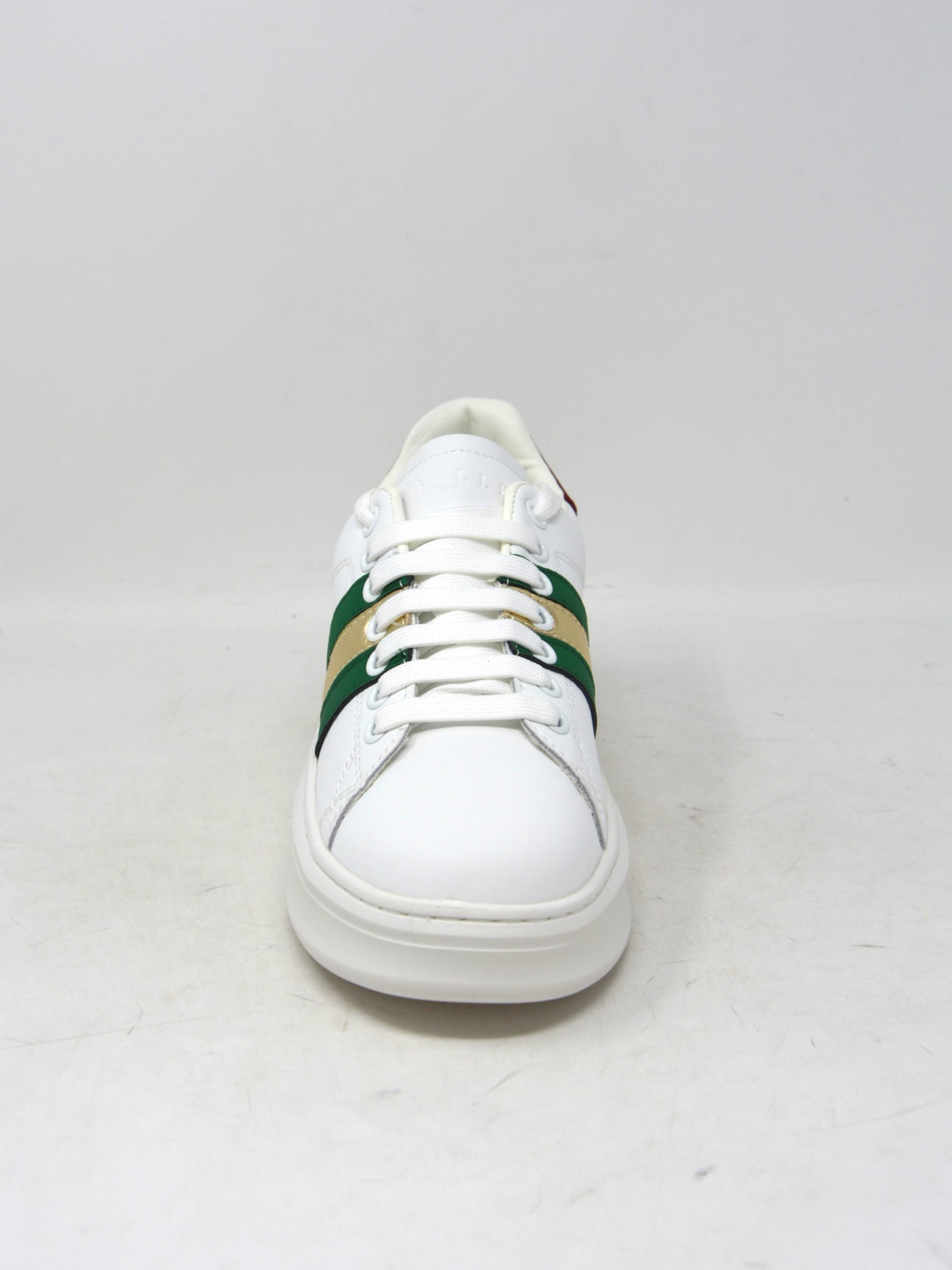 Questa sneaker in pelle con inserti verdi offre una calzata precisa e un design raffinato, ideale per chi cerca uno stile sofisticato senza rinunciare alla praticità quotidiana. Perfetta per arricchire ogni outfit con un tocco di classe discreta.