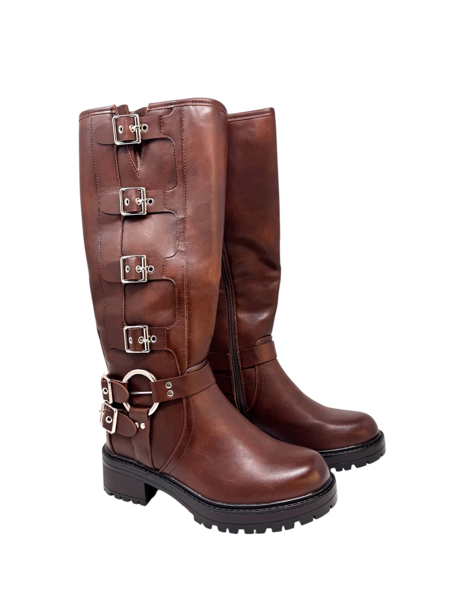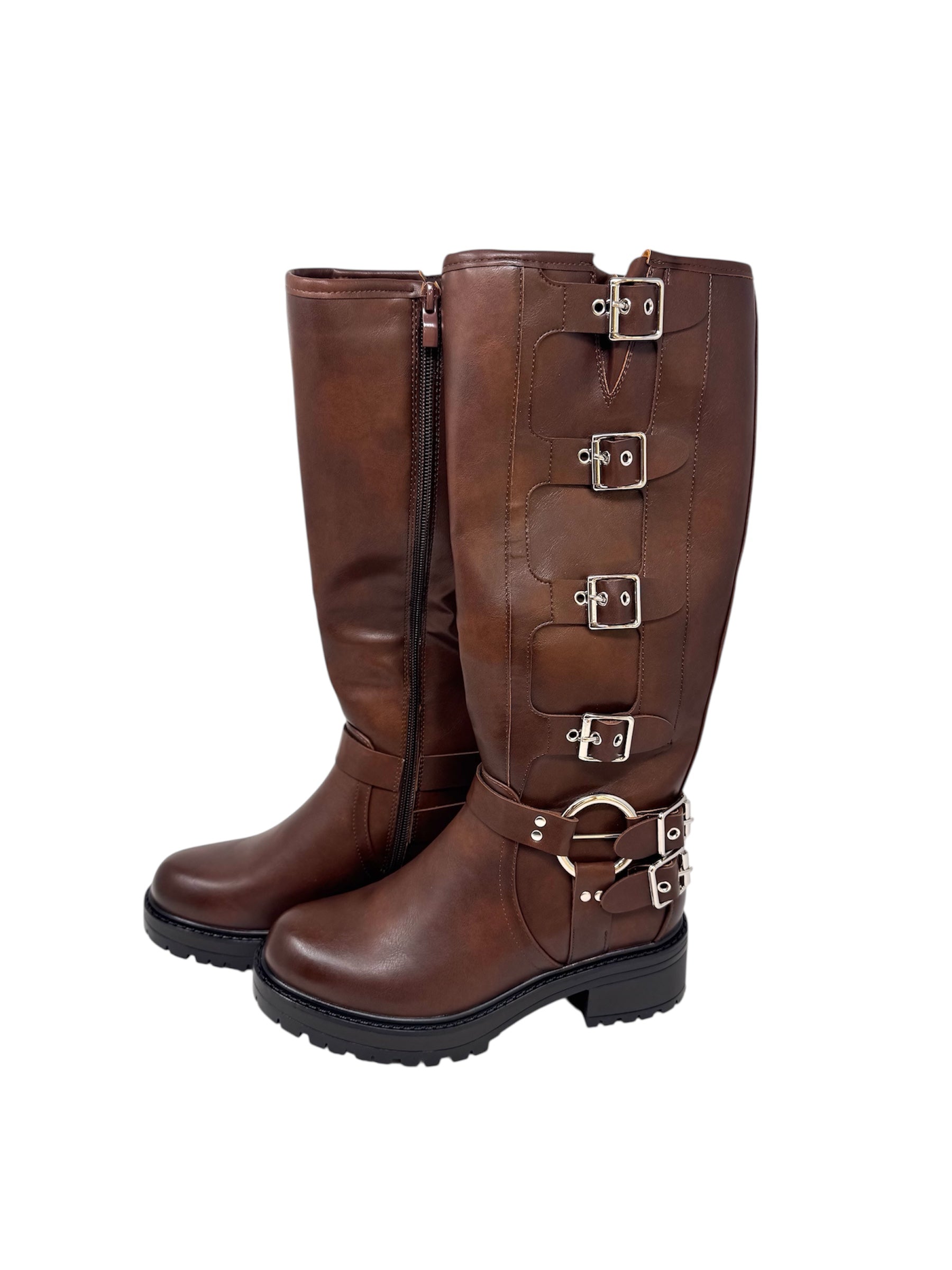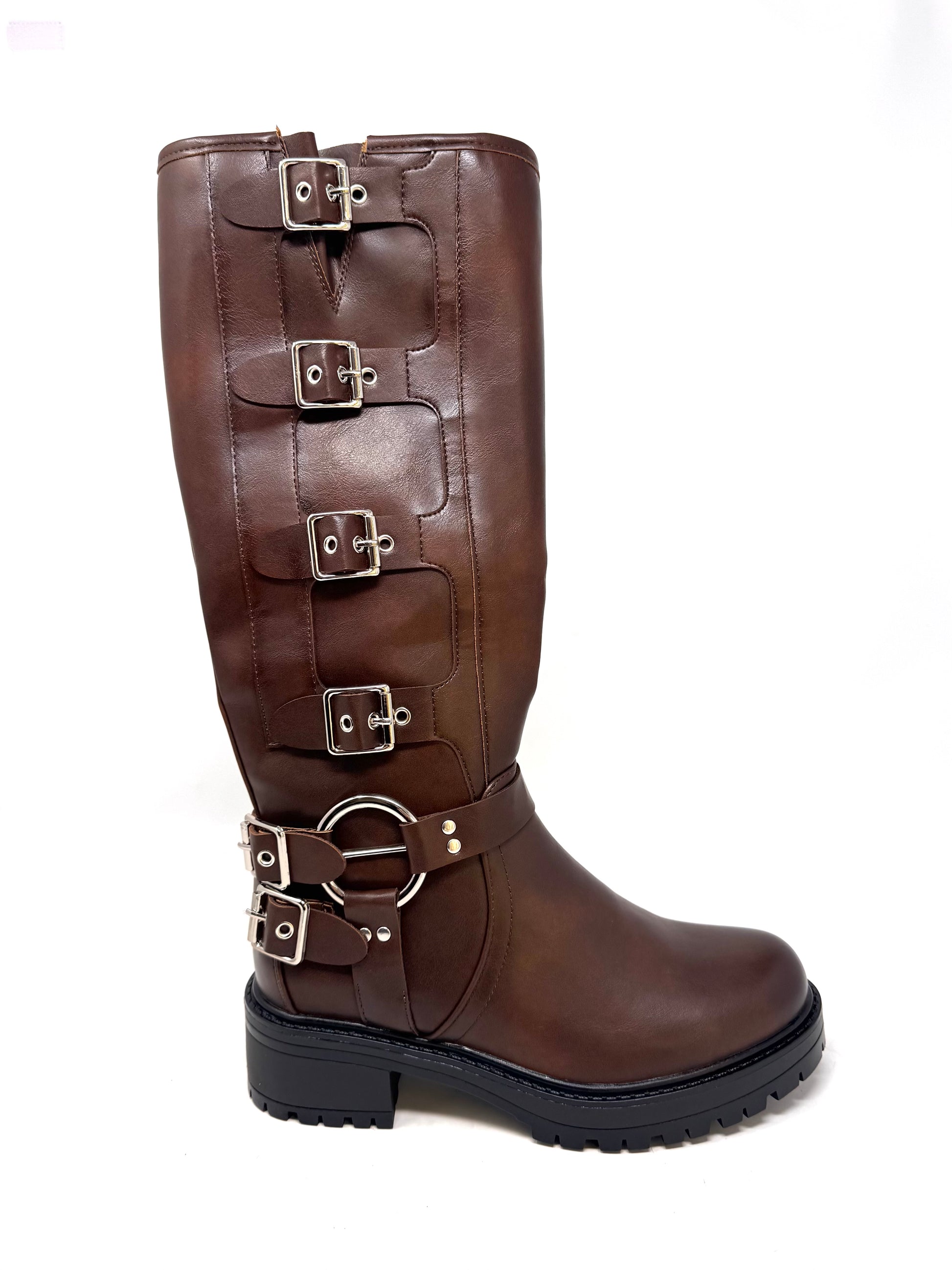 Questo stivale marrone con fibbie è l’ideale per chi cerca un look deciso e distintivo. Realizzato con materiali resistenti, offre comfort e durata durante tutta la giornata. Le fibbie aggiungono un tocco di carattere, rendendo questo stivale perfetto per esprimere grinta e personalità in ogni occasione.